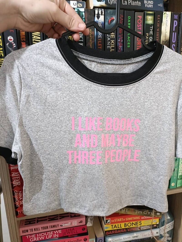 All my bookish clothing items are made in very small numbers - many are one offs! so please browse and if theres a design you love get in touch and I can let you know what items I have in stock to print an order for you!